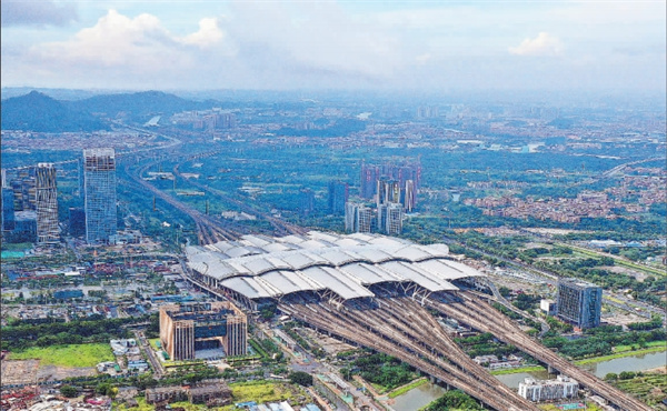 這是6月23日拍攝的廣州南站(無(wú)人機照片)。廣南聯(lián)絡(luò )線(xiàn)將從廣州南站導出,一站直達位于中心城區的廣州站。