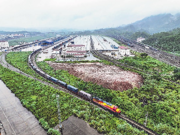 6月27日,西部陸海新通道中老泰馬跨境鐵路班列在重慶江津小南埡站發(fā)車(chē)。
